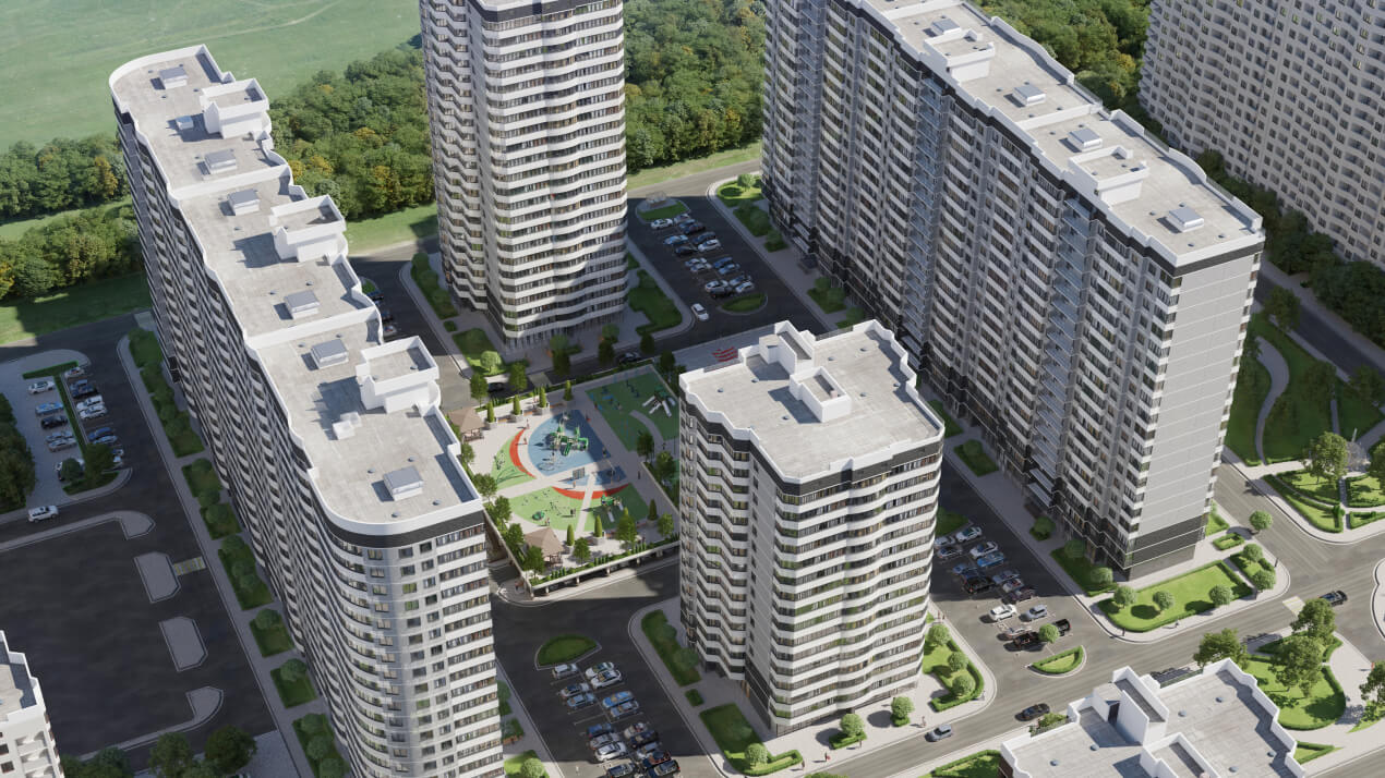 Для желающих вести бизнес рядом с домом предусмотрены коммерческие помещения с панорамным остеклением на линии первого этажа.